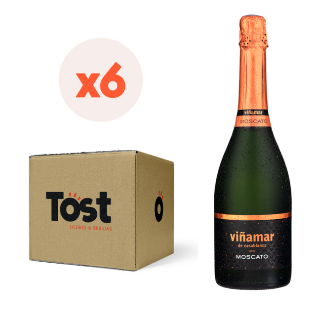 Espumante Viñamar Moscato es la opción ideal para celebraciones y momentos especiales. Este pack de 6 botellas de 750cc presenta un espumante fresco y aromático con notas florales y frutales características del Moscato.