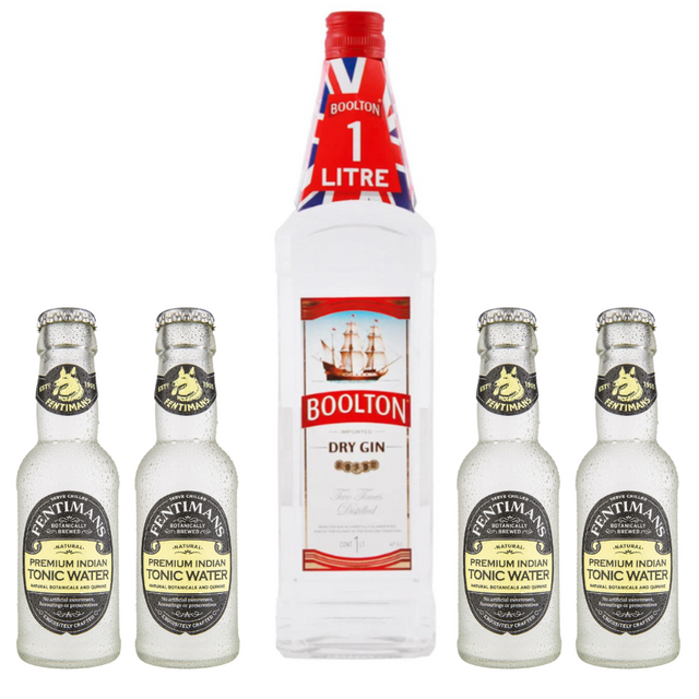 Pack Gin Boolton Dry 40° 1000cc + 4 Fentimans Premium Tonic Water